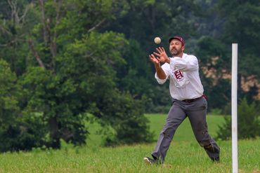 The Keystone Base Ball Club of Harrisburg was originally formed in 2010, as the Mechanicsburg Nine, and and participated in the Mid Atlantic Vintage Base Ball League (MAVBBL) from 2010 through 2018. In 2013, we learned of the existence of the original Keystone Base Ball Club of Harrisburg, a team that played in the late 1860’s, so, in keeping with the guidelines of MAVBBL, we re-branded the club as the Keystone Base Ball Club of Harrisburg (KBBC). Our mission is to provide a healthy, recreational outlet for the club membership, and to provide an enjoyable opportunity for the public to learn the interesting evolution of our national pastime in the years before exorbitant player contracts, manicured fields, performance enhancing drugs, and, yes, even gloves.